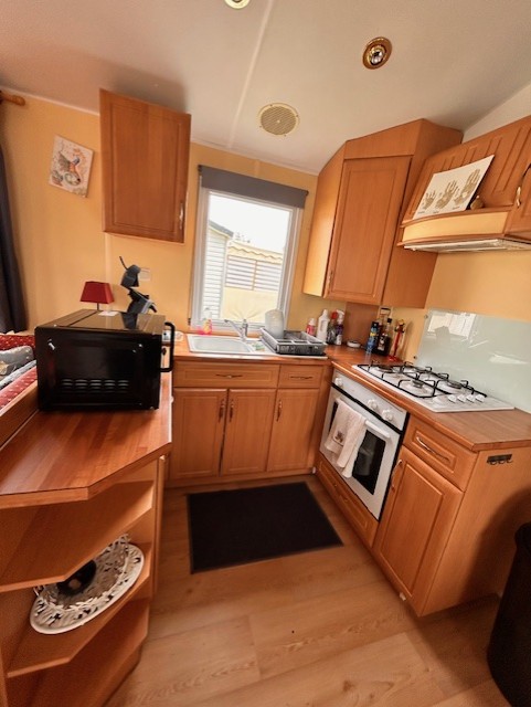 Cuisine équipée avec vaisselle fournie + four + cafetière électrique